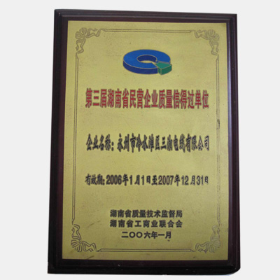 第三界湖南省民營企業質量信得過單位
